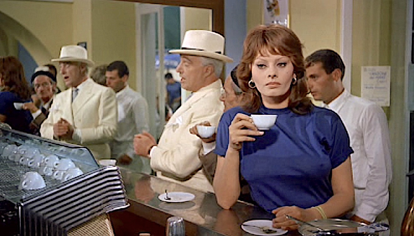 Also streckten sie den Espresso in größeren Tassen mit heißem Wasser. Da sie gute und zahlende Kunden waren, nahmen findige italienische Cafébesitzer dies als gegeben hin und den Kaffee für die Amerikaner mit ins Repertoire. Der Café Americano ist heute überall dort zu finden, wo es auch Espresso gibt. So wie hier, 17 Jahre später 1960: